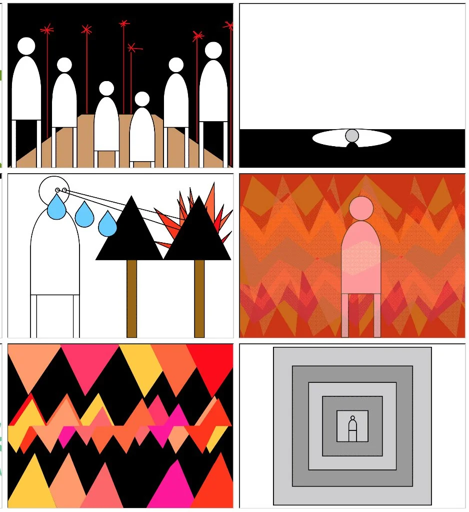 The ''news" is never static, yet reveals patterns over time while Zellen's anonymous figures move from place to place and exist within their own environments. While the "figure" implies embodiment and psychology, or lived experience the "news" points to mass media. This installation collides these modes— figuration shaped by headlines, and news content reworked through subjective, or emotional lenses. The exhibition examines what happens when fleeting information meets the enduring human form—what sticks, what distorts, what is forgotten. The combined works ask how the media frames humanity, and how anonymous silhouetted figures convey emotions and sign for us all.