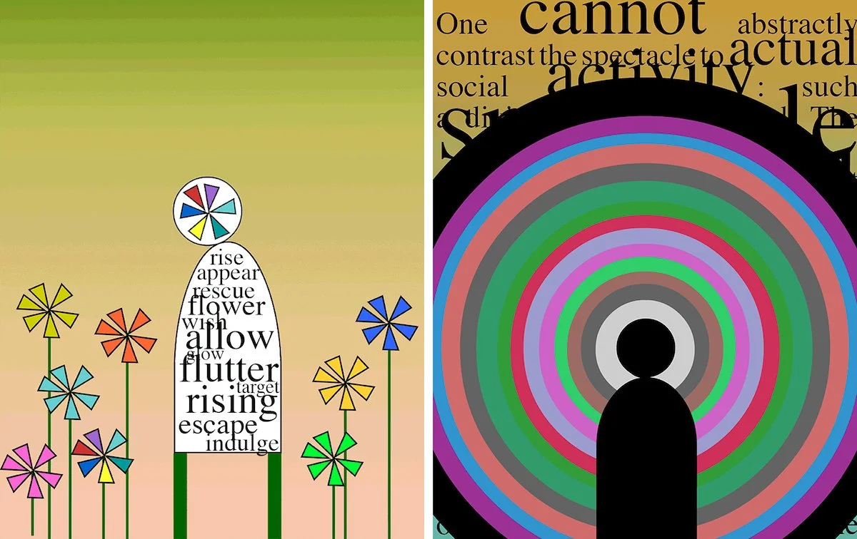 Photo News is a body of work Zellen began in 2019 where she combines fragments from news photographs with excerpts from accompanying headlines. These digital collages are posted to Instagram each day @photonews5. She began this project on January 1, 2019 and has modified it for each new iteration. At the end of each year, the 365 stills are sequenced into an animation. Six years (2019-2024) have been composited into a single film that allows viewers to compare and contrast world events. Zellen will present both the combined version on a large screen, as well as individual years on individual monitors. In addition, a grid of stills from a single month will also be on display, as will be lenticular photographs created in 2017 using her News Wheel app.